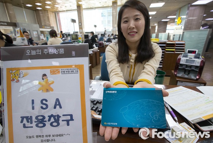 (서울=포커스뉴스) 개인종합자산관리계좌(ISA) 시판이 시작된 14일 오후 서울 여의도 국민은행 본점에서 한 직원이 ISA 통장을 선보이고 있다. ISA란 실질적 재산형성을 지원하는 세제혜택 상품으로 가입자가 신탁계좌를 이용하여 다양한 금융상품(예금, ETF, ELS, 펀드 등)을 선택하여 포트폴리오를 구성하고 운용 관리하는 계좌이다.