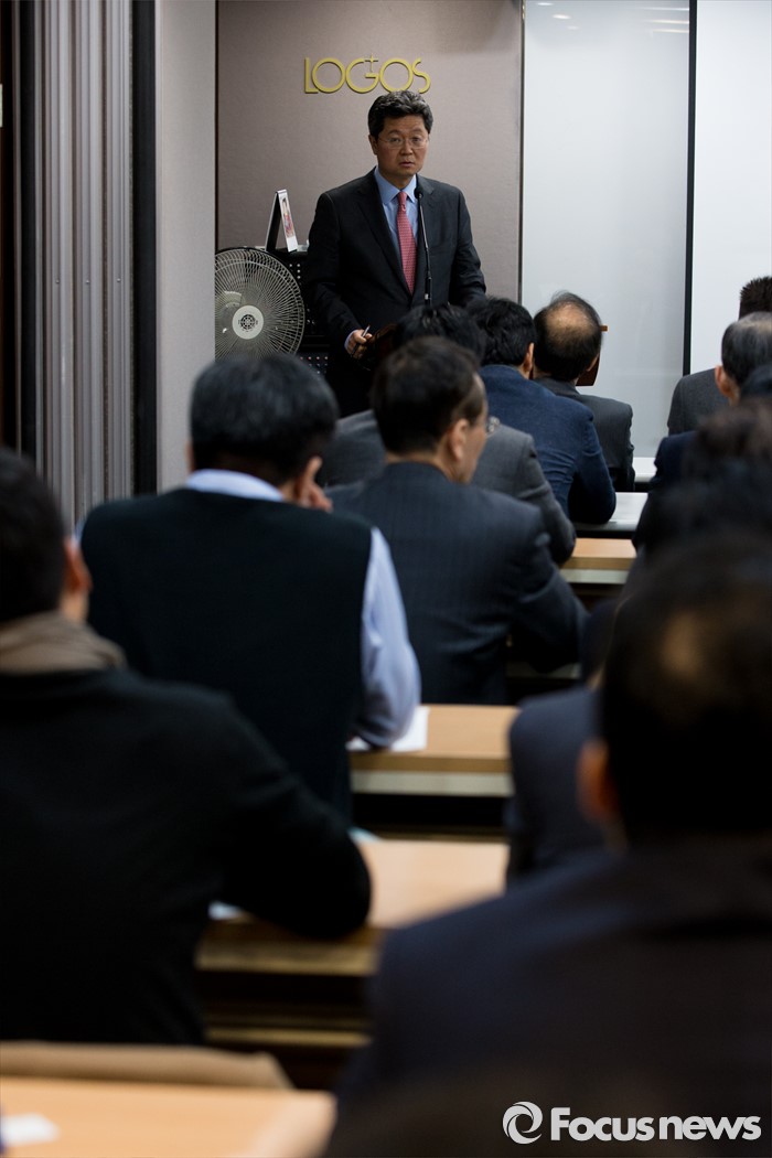 (서울=포커스뉴스) 미국에서 파생금융상품 키코(KIKO) 소송 재개를 이끌어 낸 법무법인 김앤배의 김봉준 대표변호사가 14일 오후 서울 강남구 로고스 법무법인 대회의실에서 열린 '키코사건 미국 직소송 설명회'에서 피해를 입은 국내기업 관계자들에게 소송 진행 상황을 설명 하고 있다.