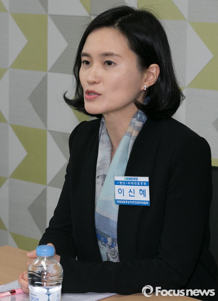 (서울=포커스뉴스) 20대 총선을 30일 앞둔 14일 오후 서울 여의도 더불어민주당사에서 열린 청년 비례대표 후보 면접에 참석한 이신혜 후보가 공관위원들의 질문에 답하고 있다.