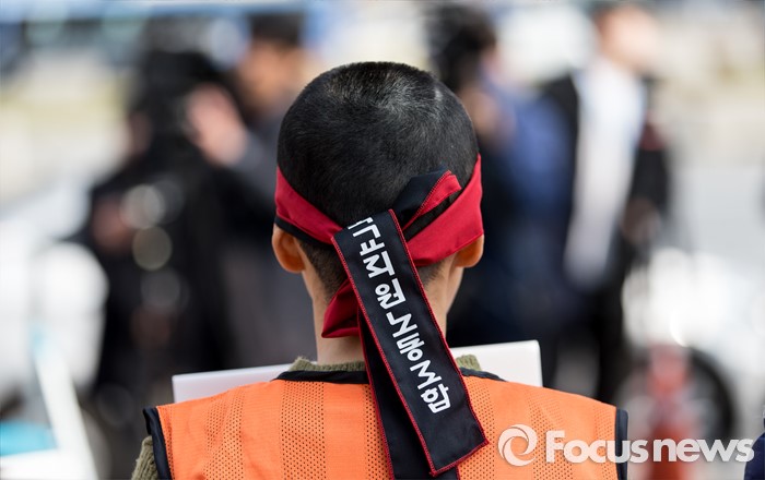 (서울=포커스뉴스) 14일 오후 서울 종로구 정부서울청사 앞에서 전국교직원노동조합 전임자들이 정부의 법외노조 후속조치와 부당탄압에 항의하며 삭발식을 하고 있다.
