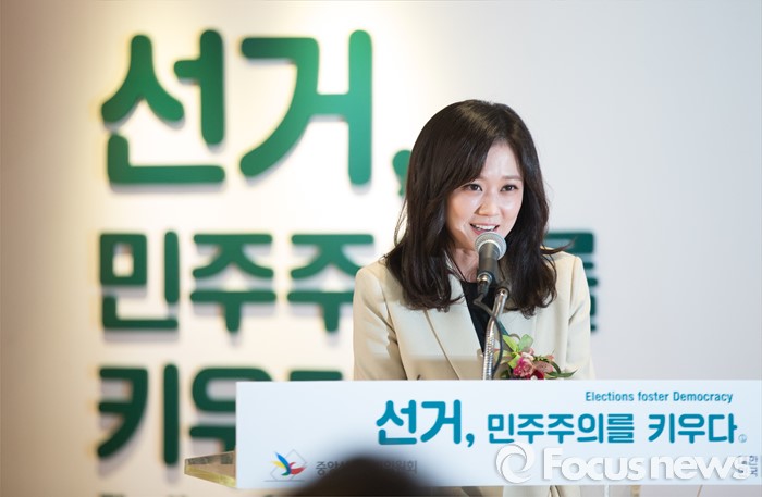 (서울=포커스뉴스) 배우 장나라 (공명선거 홍보대사)가 14일 오후 서울 종로구 대한민국역사박물관에서 열린 대한민국 선거의 역사 '선거, 민주주의를 키우다.' 특별전시회 개막식에 참석해 축하 인사를 하고 있다.