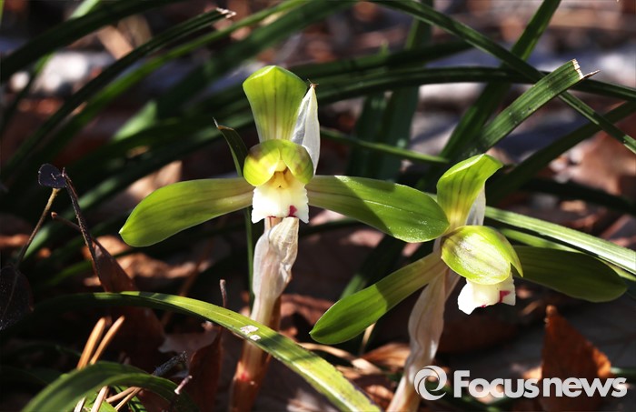 (완도=포커스뉴스) 꽃샘추위가 물러가고 봄기운이 다가온 15일 오전 전남 완도의 양지바른 야산에 자생하는 춘란이 꽃망울을 터트리고 있다. 꽃이 일찍 피기 때문에 보춘화라고도 하며,완도에서는 '꽁지발'이라고 부른다. <사진제공=이준택교수>
