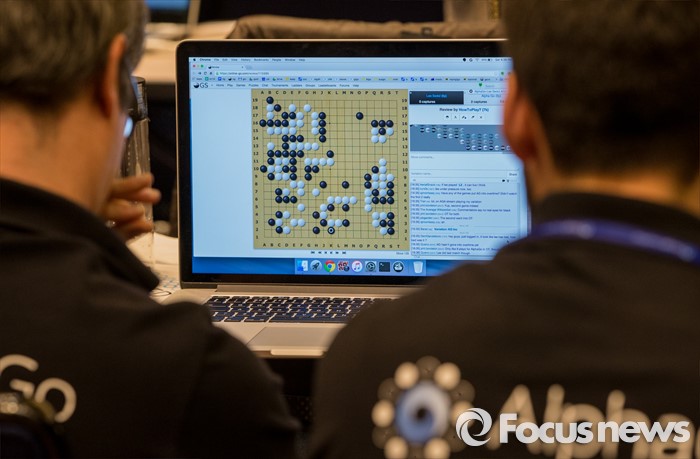 한국기원도 이날 오후 1시부터 한국기원 2층 대회장에서 공개 해설을 진행한다. 한종진 9단이 주요 수순 해설과 함께 질의응답 시간을 갖는다. 가수 김장훈씨도 다시 해설자로 나선다. 김장훈은 1국에서 해설진으로 참여했던 바둑TV에 나와 다시 중계를 맡을 예정이다.(서울=포커스뉴스) 이세돌 9단과 인공지능 알파고의 '구글 딥마인드 챌린지 매치' 3차 대국이 열린 12일 오후 서울 종로구 포시즌스 호텔 내 공개해설장에서 구글 관계자들이 대국을 지켜보고 있다. 2016.03.12 양지웅 기자