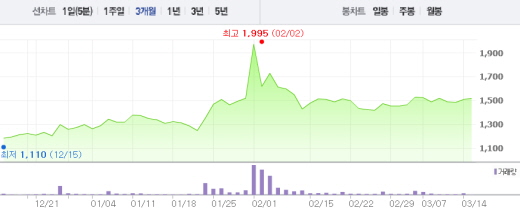 국내 DNA 백신 개발사로 지카바이러스 백신 개발에 참여하는 것으로 알려진 진원생명과학은 이틀 연속 하락세에서 반등에 성공했다. 진원생명과학은 전일 대비 1.67%(250원) 상승한 1만5250원에 거래되고 있다.