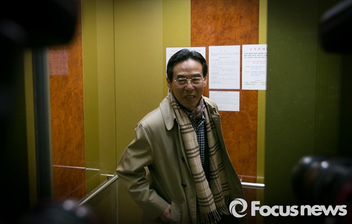 (서울=포커스뉴스) 홍창선 더불어민주당 공천관리위원장이 15일 오전 서울 여의도 당사로 출근하며 승강기에 오르고 있다.