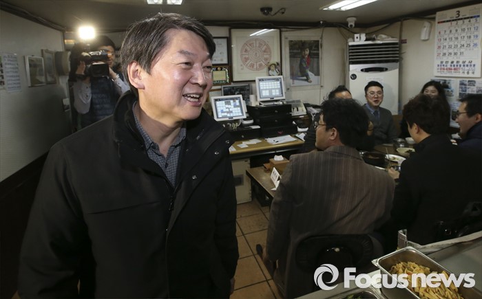 (서울=포커스뉴스) 15일 오후, 택시 기사들과 간담회를 갖기 위해 서울 마포구 연남동 한 기사식당을 방문한 안철수 국민의당 상임공동대표가 식당 손님들에게 인사 하고 있다.
