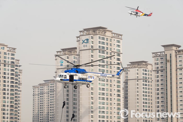 하강하는 경찰특공대원들