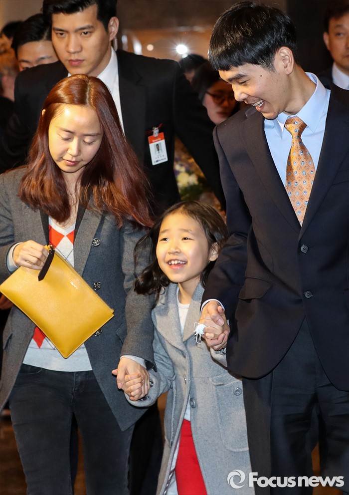 (서울=포커스뉴스) 15일 오후 서울 광화문 포시즌스 호텔에서 열린 구글 딥마인드 챌린지 매치 시상식을 마친 바둑기사 이세돌 9단(맨 오른쪽)이 아내 김현진 씨, 딸 혜림 양과 함께 발걸음을 옮기고 있다.
