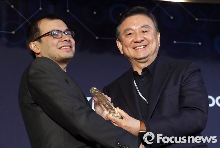 (서울=포커스뉴스) 15일 오후 서울 광화문 포시즌스 호텔에서 열린 구글 딥마인드 챌린지 매치 시상식에서 데미스 하사비스 구글 딥마인드 최고경영자가 9단이 홍석현 한국기원 총재에게 기념패를 전달받고 있다.