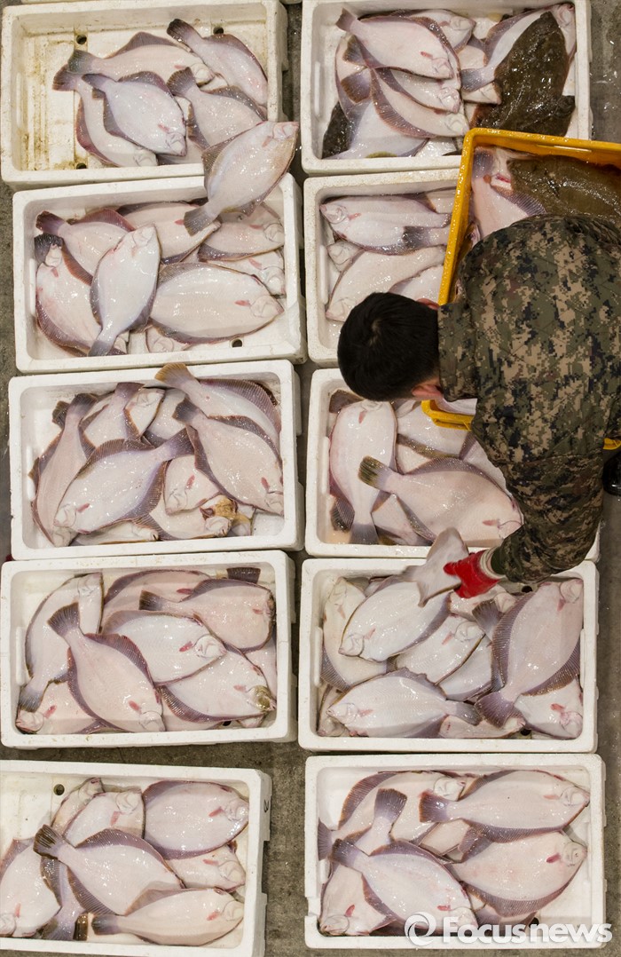 (서울=포커스뉴스) 16일 오전 서울 노량진 수산시장 현대화 건물 경매장에서 상인들이 첫 경매 준비를 하고 있다. 이날 경매를 시작으로 현대화 건물에서의 개장이 이뤄졌지만, 절반 넘는 상인들이 좁아진 상가 공간과 비싸진 임대료를 주장하며 옛 건물에 남은 채 이전을 거부 중인 상황이다.
