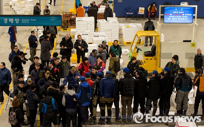 (서울=포커스뉴스) 16일 오전 서울 노량진 수산시장 현대화 건물 경매장에서 첫 경매가 열리고 있다. 이날 경매를 시작으로 현대화 건물에서의 개장이 이뤄졌지만, 절반 넘는 상인들이 좁아진 상가 공간과 비싸진 임대료를 주장하며 옛 건물에 남은 채 이전을 거부 중인 상황이다.