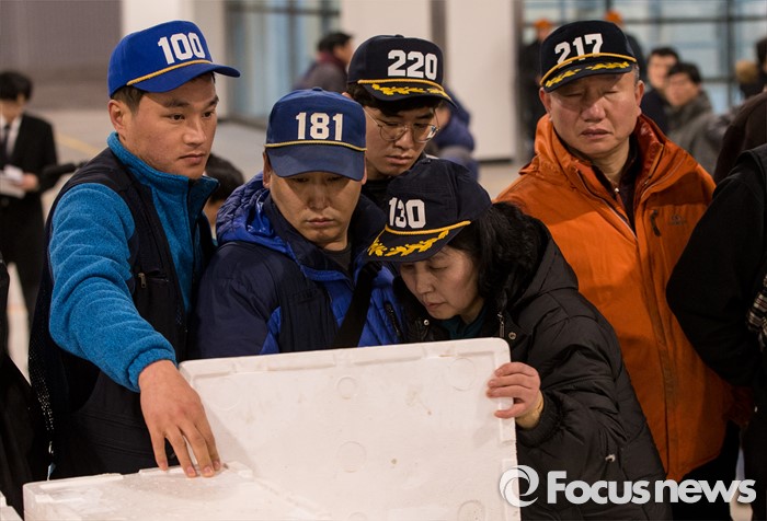 (서울=포커스뉴스) 16일 오전 서울 노량진 수산시장 현대화 건물 경매장에서 첫 경매가 열리고 있다. 이날 경매를 시작으로 현대화 건물에서의 개장이 이뤄졌지만, 절반 넘는 상인들이 좁아진 상가 공간과 비싸진 임대료를 주장하며 옛 건물에 남은 채 이전을 거부 중인 상황이다.