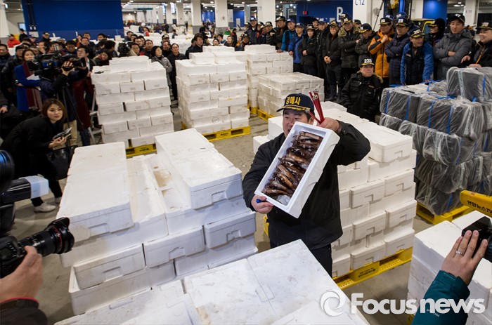 (서울=포커스뉴스) 16일 오전 서울 노량진 수산시장 현대화 건물 경매장에서 첫 경매가 열리고 있다. 이날 경매를 시작으로 현대화 건물에서의 개장이 이뤄졌지만, 절반 넘는 상인들이 좁아진 상가 공간과 비싸진 임대료를 주장하며 옛 건물에 남은 채 이전을 거부 중인 상황이다.