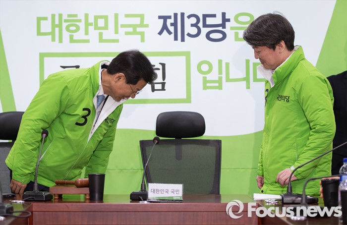 (서울=포커스뉴스) 안철수, 천정배 국민의당 상임공동대표가 16일 오전 서울 여의도 의원회관에서 열린 최고위원회의에 참석하고 있다.