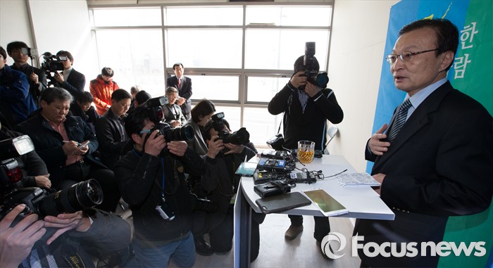 (세종=포커스뉴스) 이해찬 더불어민주당 의원이 16일 오전 세종시 도담동 선거사무소에서 기자회견을 열고 더불어민주당 탈당과 무소속 출마의사를 밝히고 있다.