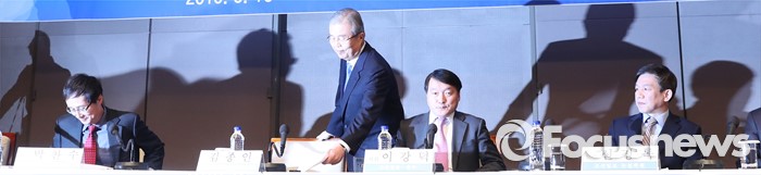 (서울=포커스뉴스) 김종인 비대위 대표가 16일 오전 서울 중구 한국프레스센터 국제회의장에서 열린 '김종인 더불어민주당 비상대책위원회 대표 초청 관훈토론회'에 참석, 자리에 앉고 있다.