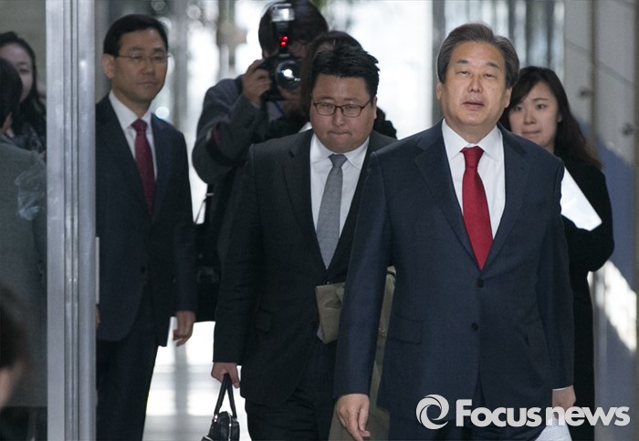 (서울=포커스뉴스) 공천 배제된 주호영(왼쪽 뒤) 새누리당 의원이 16일 오전 서울 여의도 국회에서 열린 비공개 최고위원회의에 참석하는 김무성(오른쪽) 대표를 바라보고 있다.