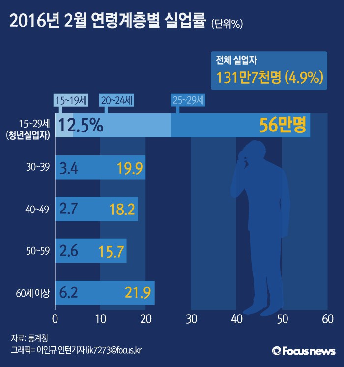 (서울=포커스뉴스) 통계청이 16일 발표한 ‘2월 고용동향'에 따르면 지난달 청년(15∼29세) 실업률은 12.5.%로 전년 동월 대비 1.4%p증가했다.