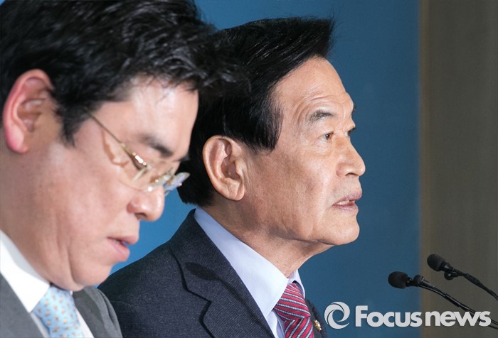 (서울=포커스뉴스) 20대 총선 공천 배제(컷오프)된 서상기(오른쪽), 홍지만 새누리당 의원이 16일 오전 서울 여의도 국회 정론관에서 불출마 선언 및 당 결정 수용 기자회견을 하고 있다.