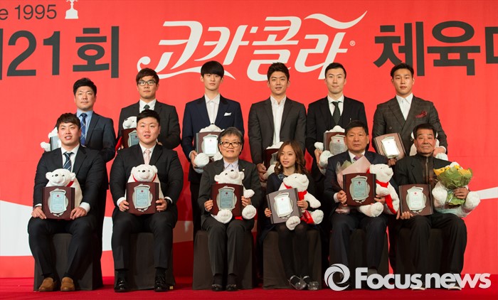 (서울=포커스뉴스) 16일 오전 서울 중구 더플라자호텔 그랜드볼룸에서 열린 제21회 코카콜라 체육대상 시상식에서 수상자들이 기념촬영을 하고 있다.