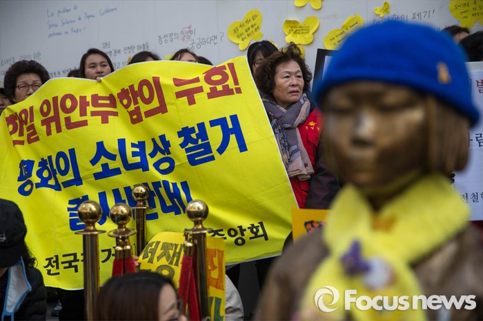 (서울=포커스뉴스) 16일 오후 서울 종로구 옛 일본 대사관 앞에서 '일본군 위안부 문제해결을 위한 1222차 정기 수요집회'가 열리고 있다.