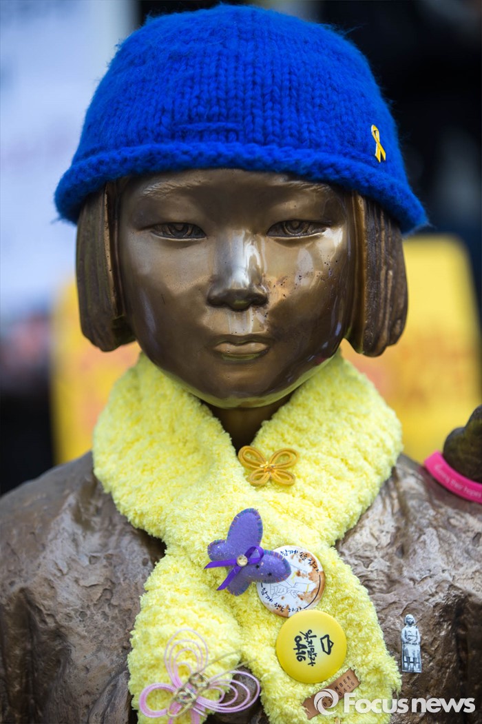 (서울=포커스뉴스) 16일 오후 서울 종로구 옛 일본 대사관 앞에서 '일본군 위안부 문제해결을 위한 1222차 정기 수요집회'가 열리고 있다.