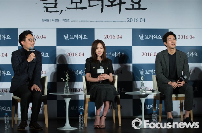 (서울=포커스뉴스) 16일 오전 서울 동대문 메가박스에서 영화 '날,보러와요(감독 이철하)' 제작보고회가 열리고 있다. 왼쪽부터 이철하 감독, 배우 강예원, 배우 이상윤. 영화 '날,보러와요'는 이유도 모른채 정신병원에 납치 강금된 여자(강예원)와 시사프로 소재를 위해 그녀의 사연에 관심을 갖게 된 PD(이상윤)가 밝혀낸 믿을 수 없는 진실에 대한 충격실화 스릴러다.