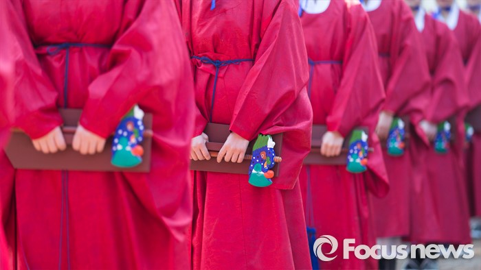 (서울=포커스뉴스) 16일 오전 서울 종로구 성균관 대성전에서 열린 '2016 춘기석전대제'에서 일무보존회 회원들이 약적(약은 피리이며 적은 꿩의 깃을 묶어 무악(舞樂)에서 손에 쥐는 물건)을 들고 있다. 석전대제는 매년 봄, 가을 두 차례 유교의 성현 39위에게 제사를 올리는 유교에서 가장 큰 의식이다.
