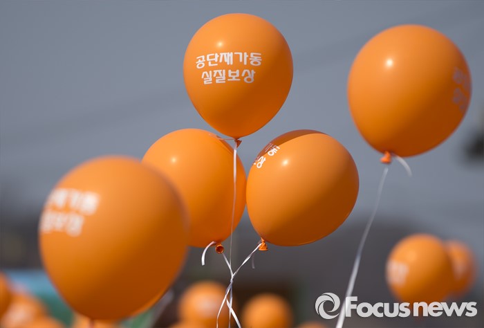 (파주=포커스뉴스) 16일 오후 경기도 파주시 임진각 망배단에서 개성공단 입주기업, 영업기업, 협력기업 등 대표를 비롯한 임직원과 가족들이 '개성공단 평화대행진 집회'를 하고 있다.