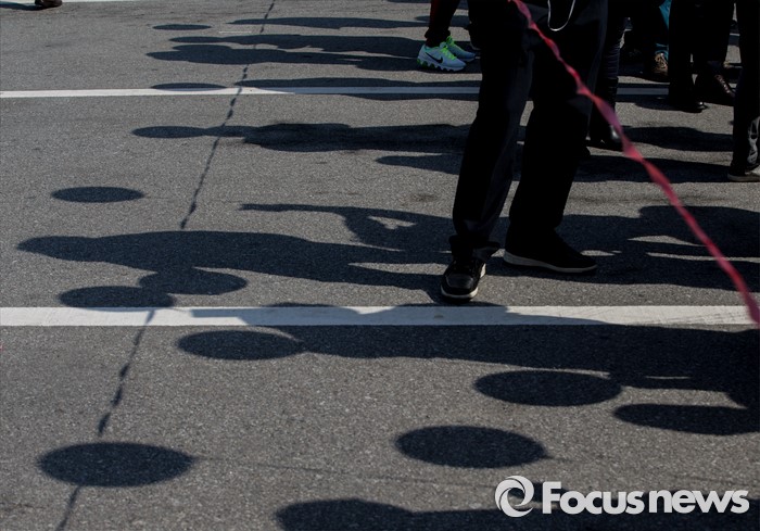 (파주=포커스뉴스) 16일 오후 경기도 파주시 임진각 망배단에서 개성공단 입주기업, 영업기업, 협력기업 등 대표를 비롯한 임직원과 가족들이 '개성공단 평화대행진 집회'를 하고 있다.