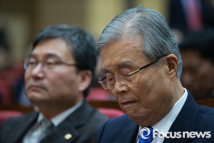 (서울=포커스뉴스) 김종인 더불어민주당 대표(오른쪽)가 16일 오후 서울 여의도 국회 의원회관에서 열린 '자영업자 정책연대 및 생존권 사수 출정식'에 참석하고 있다.