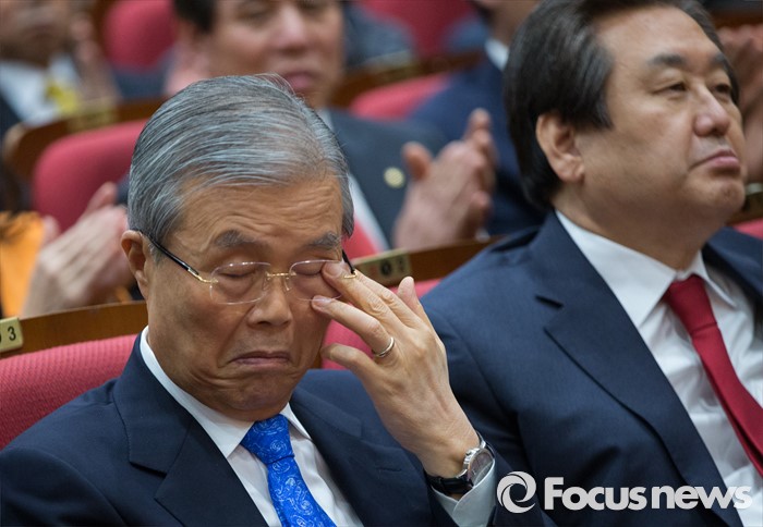 | △ 졸음 참는 김종인 |