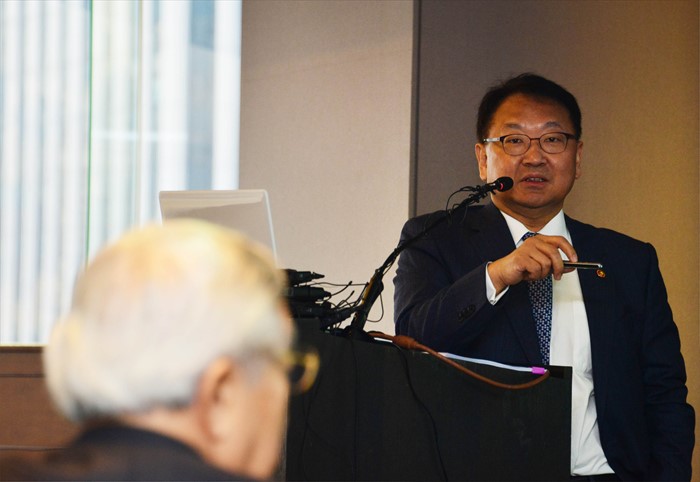 (서울=포커스뉴스) 유일호 부총리 겸 기획재정부 장관이 16일 서울시 중구 플라자호텔에서 열린 서울파이낸셜포럼에 참석해 ‘최근 경제동향 및 정책방향’을 주제로 강연을 하고 있다. <사진제공=기획재정부>