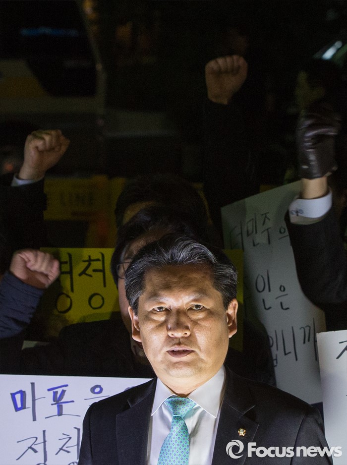 (서울=포커스뉴스) 20대 총선에서 공천배제된 정청래 더불어민주당 의원이 16일 오후 서울 여의도 당사 앞에서 가진 기자회견에서 자신의 거취를 밝히고 있다.