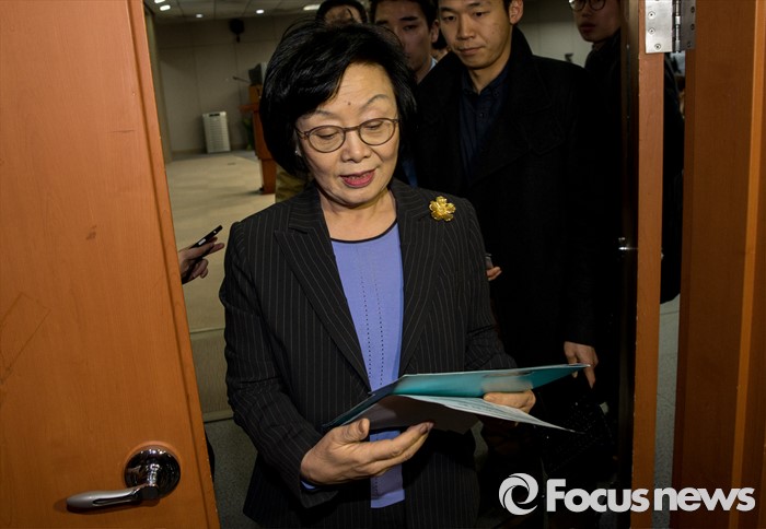 (서울=포커스뉴스) 16일 오후 서울 여의도 국회 정론관에서 신명 더불어민주당 중앙당 선거관리위원장이 20대 총선 후보 결정을 위한 2차 경선 결과 발표를 마친 후 발걸음을 옮기고 있다.