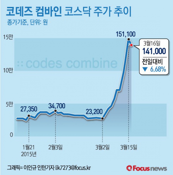 ( ☞ 코데즈컴바인 주가 움직임과 유사한 과거 사례는 어떤 것이 있나 - 기사 바로가기)