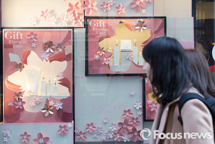 (서울=포커스뉴스) 17일 오전 서울 중구 명동 거리의 쇼윈도가 봄을 맞아 새로 단장돼 있다.