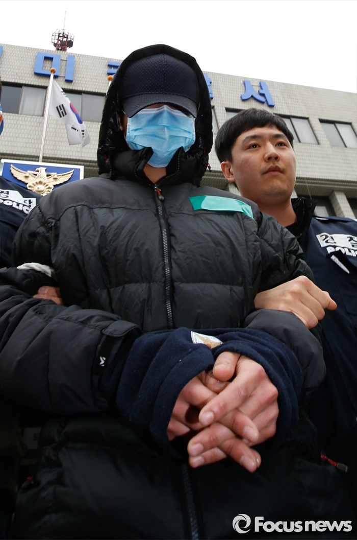 (부천=포커스뉴스) 생후 2개월 영아를 폭행해 숨지게 한 아버지 박모(23)씨가 현장검증 하기 위해 17일 오후 경기도 부천원미경찰서를 나서고 있다.