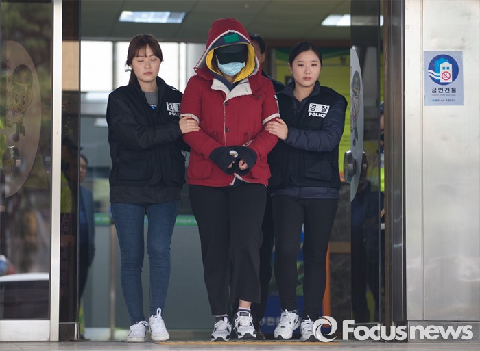(부천=포커스뉴스) 생후 2개월 영아를 폭행해 숨지게 한 어머니 이모(23)씨가 현장검증 하기 위해 17일 오후 경기도 부천원미경찰서를 나서고 있다.
