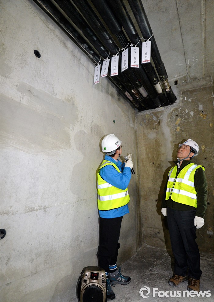 (서울=포커스뉴스) 박원순 서울시장이 17일 오전 통행재개를 앞둔 서울 내부순환로를 점검하기 위해 정릉천고가 교량 상부구조물 내부에서 시설관리공단 관계자와 함께 일부 교체를 마친을 텐던 및 부품을 살펴보고 있다.