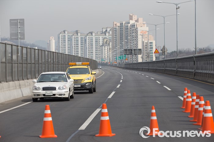 (서울=포커스뉴스) 상부를 지지하던 일부 텐던(대형케이블)이 손상된 것을 발견해 지난달 22일부터 차량 통행이 전면 중단됐던 서울 내부순환로 정릉천고가가 오는 19일부터 통행이 재개된다. 사진은 17일 통제로 텅빈 모습의 서울 내부순환로 정릉천고가.
