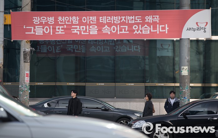 (서울=포커스뉴스) 17일 오후 서울 영등포구 선유도역 주변에 새누리당의 선거철 현수막이 걸려 있다.
