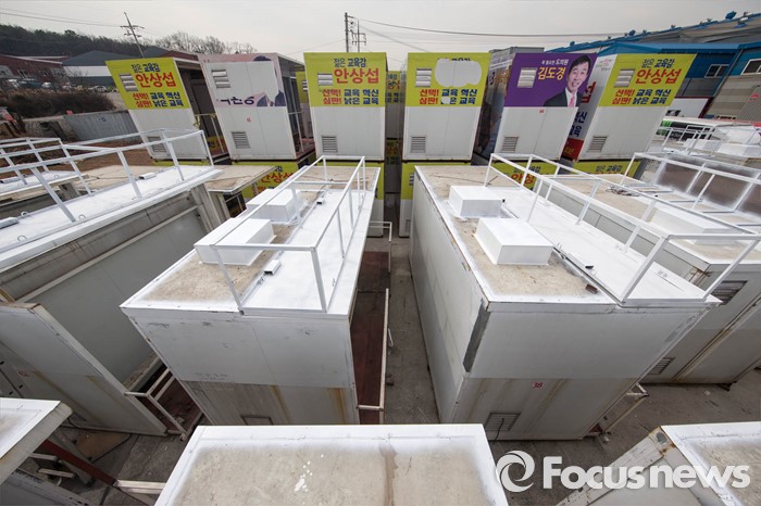 (김포=포커스뉴스) 4.13 총선을 앞둔 17일 오전 경기도 김포시에 위치한 차량구조물 제작업체 야적장에 선거 유세차량에 쓰이는 구조물들이 쌓여 있다.