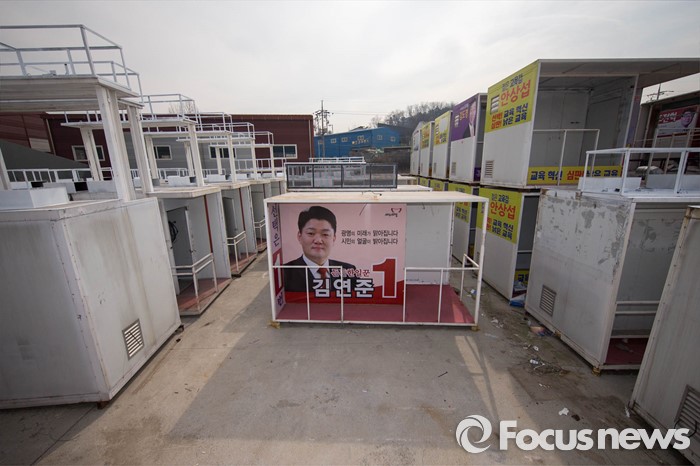 | △ 새로운 주인 기다리는 선거 유세차량 구조물들 |