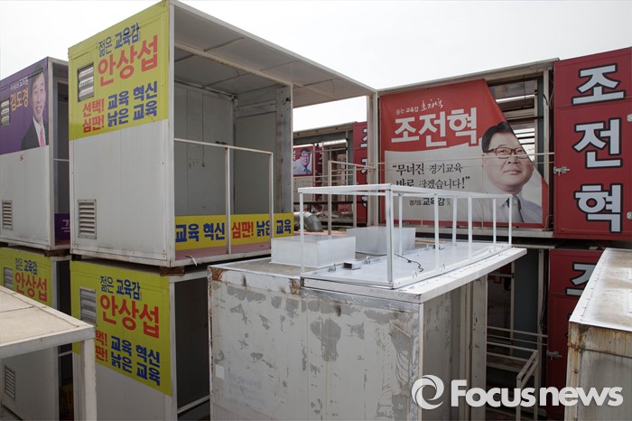 | △ 쌓여있는 선거 유세차량 구조물들 |