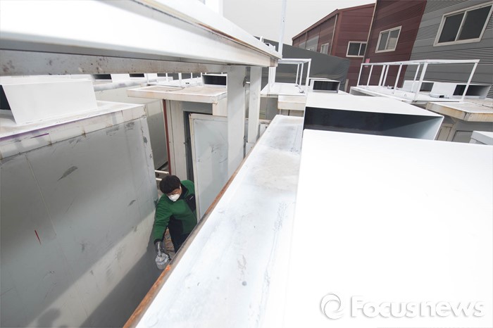 (김포=포커스뉴스) 4.13 총선을 앞둔 17일 오전 경기도 김포시에 위치한 차량구조물 제작업체 야적장에서 한 근로자가 선거 유세차량에 쓰일 구조물들을 정비하고 있다.
