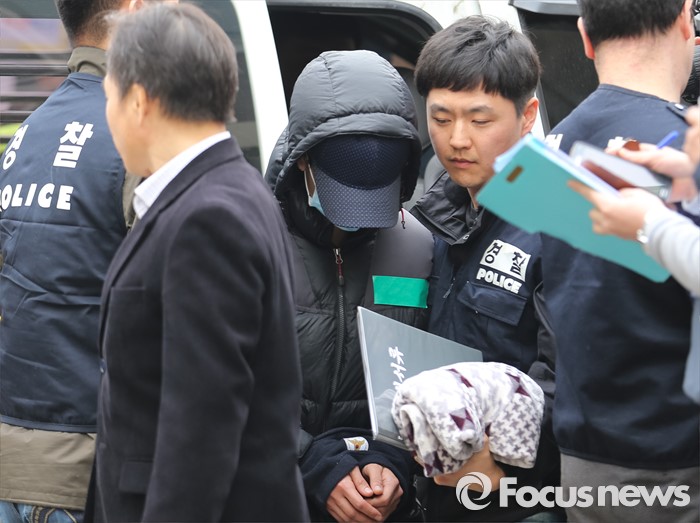 (부천=포커스뉴스) 생후 2개월 영아를 폭행해 숨지게 한 아버지 박모(23)씨가 17일 오후 경기도 부천시 오정구 자택에서 현장검증을 하기위해 들어서고 있다.