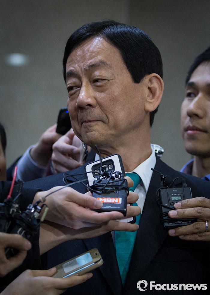 (서울=포커스뉴스) 공천에서 배제 된 새누리당 3선 중진 진영 의원이 17일 오후 서울 여의도 국회 정론관에서 탈당 기자회견을 마친 후 기자들의 질문을 받고 있다.