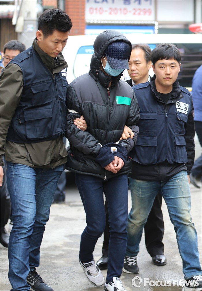 | △ 현장검증 장소 들어서는 피의자 박모씨 |