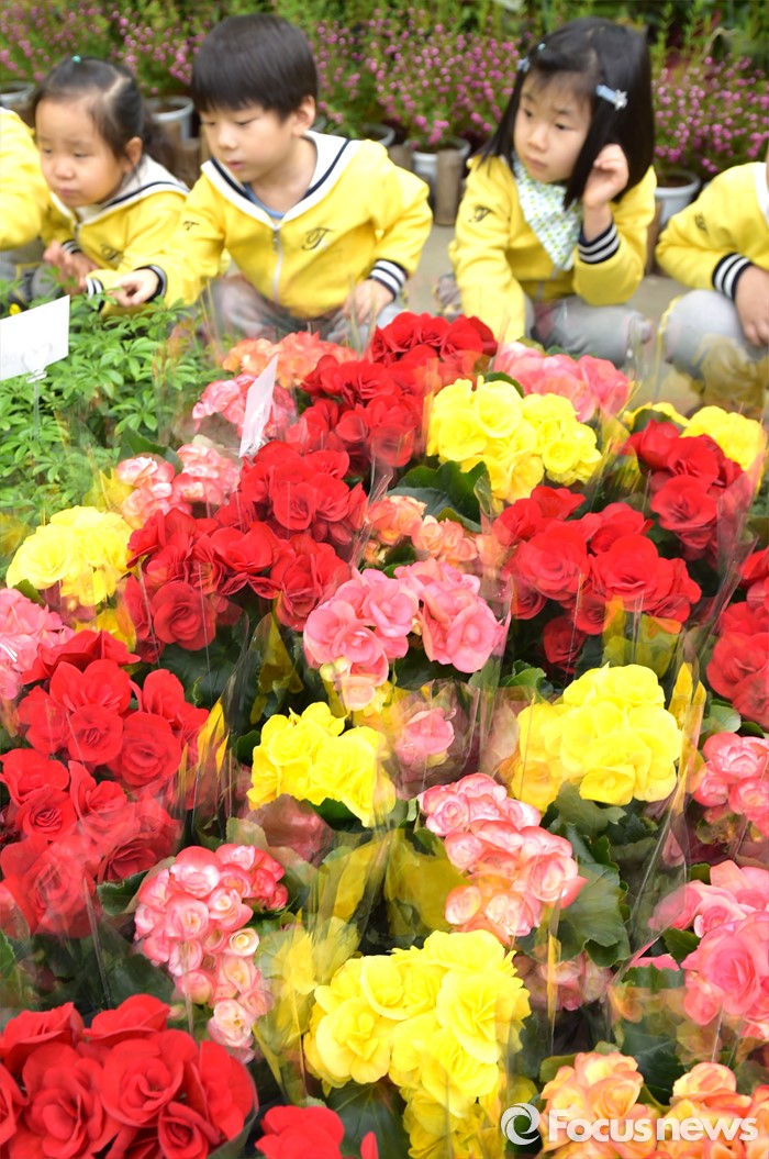 (서울=포커스뉴스) 17일 서울 서초구 하나로클럽 양재점에서 열린 '새봄맞이 봄꽃축제'에서 어린이들이 형형색색의 봄꽃들을 관찰하고 있다. 농협유통은 이번 행사를 통해 수선화 3,000원, 튤립 2,500원 등 다양한 봄꽃을 최대 30% 할인 판매한다. <사진제공=농협유통>